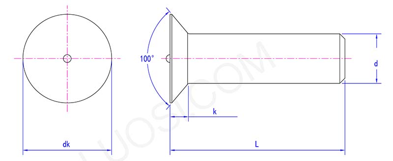 100 ဒီဂရီပြားခေါင်းလုံးလုံးကိုသူတို့၏ conical ခေါင်း၏ထောင့်အပြီးတွင်အမည်ပေးထားသည်။ ဤသည်တိကျသော 100 ဒီဂရီဒီဇိုင်းသည်ဂဟေဆော်ခြင်းကိုအခြေခံပစ္စည်းနှင့်နီးပါးနီးပါး flush ဖြစ်သည်။ ၎င်းသည်စာရွက်သတ္တုပြုပြင်ခြင်း (သို့) မျက်နှာပြင်သို့ဂဟေဆော်ခြင်းအတွက်ဘုံရွေးချယ်မှုတစ်ခုသည်အမြင်အာရုံသို့မဟုတ်လည်ပတ်မှုချောချောမွေ့မွေ့ကိုထိန်းသိမ်းရန်လိုအပ်သည့်အခြေအနေများအတွက်ရွေးချယ်စရာတစ်ခုဖြစ်သည်။
