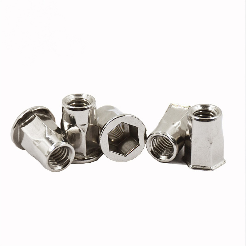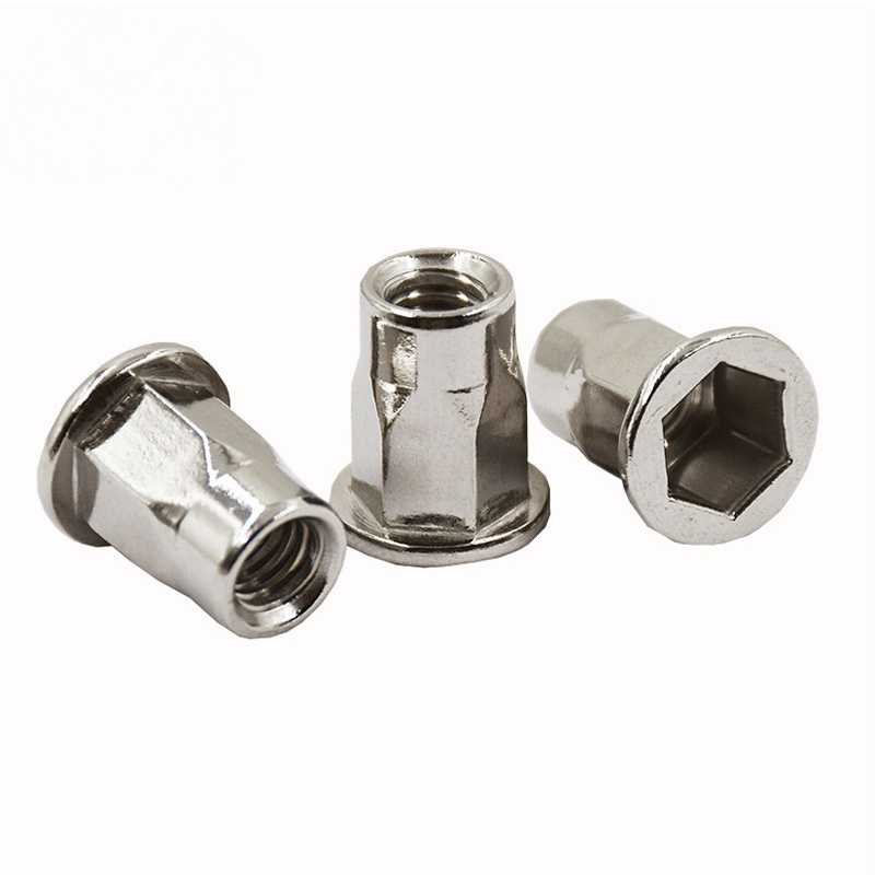 A: အကယ်. သင်သည်မှန်ကန်သောအရွယ်အစားကို ဦး စွာဆန့်ကျင်သောဆန့်ကျင်ဘက်အပေါက်ကိုသင်လေ့ကျင့်နေသမျှကာလပတ်လုံး၎င်းကိုပစ္စည်းအမျိုးမျိုးဖြင့်တပ်ဆင်နိုင်သည်။ အသုံးများသောလူများအသုံးပြုသူများသည်နူးညံ့သောသံမဏိ, အလူမီနီယမ်နှင့်ဖန်မျှင်ထည်များဖြစ်သည်။ သူတို့ဟာတဖြည်းဖြည်းချင်းပျော့ပျောင်းသောသို့မဟုတ်ပျော့ပျောင်းသောပလတ်စတစ်, အမှုန်ဘုတ်အဖွဲ့သို့မဟုတ်ပါးလွှာသောစာရွက်သတ္တုများကဲ့သို့ကောင်းစွာအလုပ်လုပ်ကြသည်။ ပုံမှန် Rivet အခွံမာသီးများသည်ဤပစ္စည်းများတွင်လည်ပတ်နိုင်သော်လည်းဤအရာသည်၎င်းတို့၏ hex ပုံသဏ် chip ာန်ကသူတို့ကိုပိုမိုကောင်းမွန်စွာဆုပ်ကိုင်ထားသည်။ အဲဒီလိုနည်း, သငျသညျအစိုင်အခဲနေဖို့နှင့်ပတ်ပတ်လည်လည်မလှည့်လည်သောချည်တစ်ခုရ။