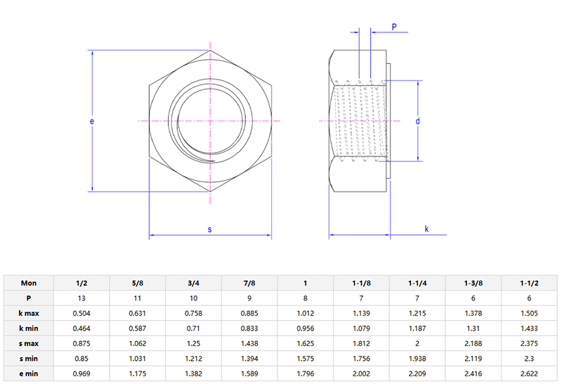重型六角结构螺母垫圈面比普通螺母更坚固,常用于建筑或重型工程。当螺母拧紧螺栓时,垫圈部分会分散压力。它常与高强度和大直径螺栓配合使用။