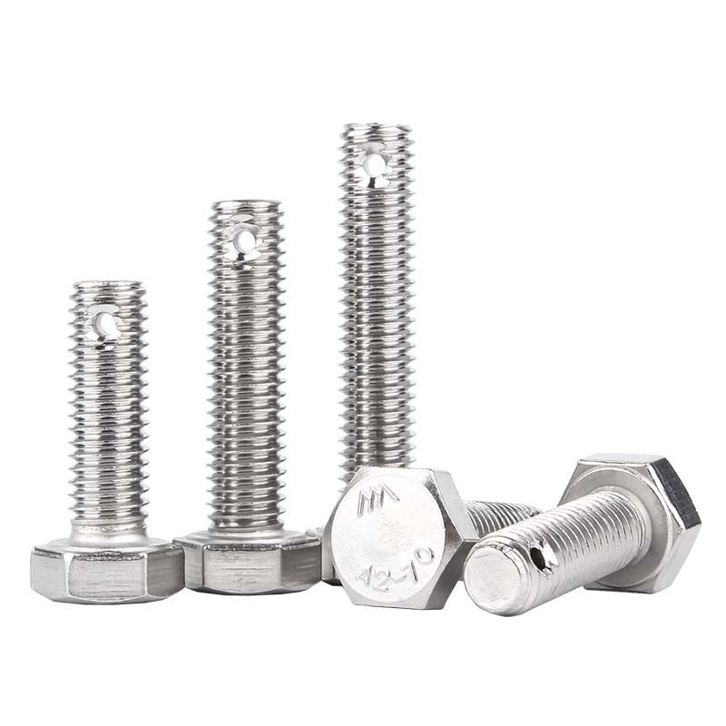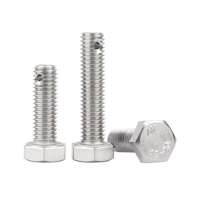 ၏ ဦး ခေါင်းSplit Pin Hole နှင့်အတူ Heyxagasy သော့ခလောက်ဆ hexagonal သည်နှင့်လိမ်ဖဲ့ခြင်းနှင့်အတူတင်းကျပ်နိုင်ပါတယ်။ သေးငယ်တဲ့အပေါက်တစ်ပေါက်သည်ချည်မျှင်မပါဘဲ Shanks တွင်တူးဖော်သည်။ ဒီအသေးငယ်တဲ့အပေါက်ကို bolt ကိုသော့ခတ်ဖို့ cotter pin နဲ့ဖြည့်စွက်နိုင်ပါတယ်။