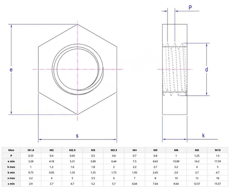 Hamfer မပါဘဲ Hexagon ပါးလွှာသောအခွံမာသီးချွန်ထက်သောအနားနှင့်အဘယ်သူမျှမ chamfering နှင့်အတူပြားချပ်ချပ်, ဆိုးရွားသောပုံသဏ် is ာန်ဖြစ်ပါတယ်။ M3-M16 မှအရွယ်အစားအရွယ်အစားဖြင့်ရရှိနိုင်သောအပိုပစ္စည်းများအတွက်အသုံးပြုသည်သို့မဟုတ်တပ်ဆင်ရန်အသုံးပြုသည်။