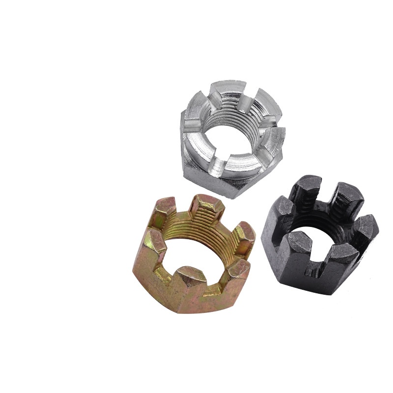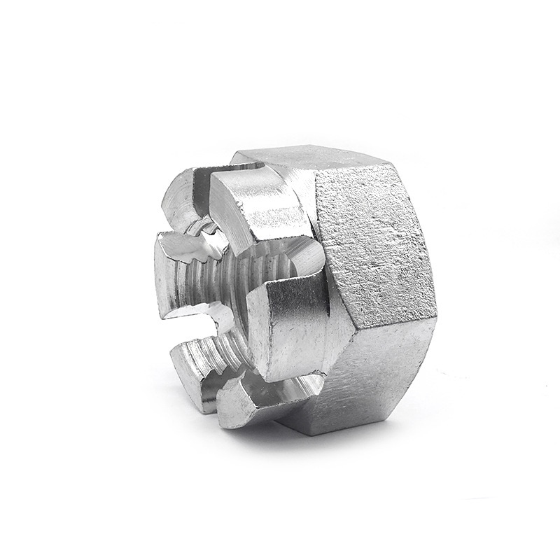 Slot နှင့်အတူမြင့်မားသော torque သရဖူအခွံမာသီးသည်အရေးကြီးသောအလုပ်များတွင်အသုံးပြုသောအထူးစွဲစေသည့်အထူးစွဲစေပြီး, ၎င်းသည်ပုံမှန် Hex အခွံမာသီးနှင့်တူသော်လည်းထိပ်တွင် slot clot clot နှင့်အတူဆလင်ဒါသရဖူဆောင်းအစိတ်အပိုင်းတစ်ခုရှိသည်။ ထို slot က cotter pin သို့မဟုတ်ဘေးကင်းလုံခြုံမှုဝါယာကြိုးကို အသုံးပြု. ၎င်းကိုတင်းတင်းကျပ်ကျပ်သော့ခတ်နိုင်သည်။ ပုံမှန်အခွံမာသီးများချွေတာနိုင်သည့်အခါဤအခွံမာသီးများသည် ဆက်. လုံခြုံစိတ်ချရသောစက်ပိုင်းဆိုင်ရာတည်ဆောက်မှုများအထူးသဖြင့်လုံခြုံစိတ်ချရသောကြောင့်အလွန်အရေးကြီးသည်။