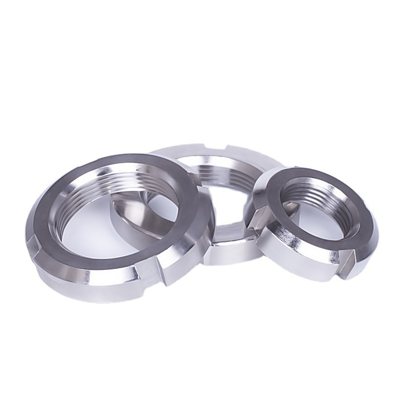 တိကျသော machined slotted ပတ်ပတ်လည်အခွံမာသီးသည်ပုံမှန်အခွံမာသီးများအနေဖြင့်တုန်ခါမှုမှပျောက်ကွယ်သွားမည့်စက်မှုပစ္စည်းကိရိယာများတွင်အစိတ်အပိုင်းများကိုကိုင်ထားလေ့ရှိသည်။ အခွံမာသီးကိုအဓိကအသုံးပြုမှုသည်အမြဲတမ်းသော့ခတ်ရန်လိုအပ်သည့်ကားများ, ရိုးတံများ,