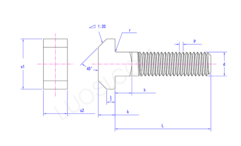 စတုရန်းလည်ပင်းသည် t ကို t ကိုသော့ခလောက်အလွန်အမင်းမှတ်မိဖြစ်ကြသည်။ ဘေးဘက်မှကြည့်ရှုအားပေးသည့်အနေဖြင့်ခေါင်းသည်ဝက်အူနှင့်ချိတ်ဆက်ထားသည့်အပိုင်း, လည်ပင်းသည်ပုံမှန်စတုရန်း, သပ်သပ်ရပ်ရပ်နှင့်စတုရန်းဖြစ်သည်။ ထို့အပြင်လည်ပင်း၏အရှည်သည်များသောအားဖြင့်ရှည်လျားလွန်းပြီးယေဘုယျအားဖြင့်၎င်းသည်ချိတ်ဆက်ထားသောအစိတ်အပိုင်းတစ်ခုအနေဖြင့်တူညီသောအထူအကြောင်းဖြစ်သည်။ အဆိုပါဝက်အူအစိတ်အပိုင်းသည်ဆလင်ဒင်ဒစ်သတ္တုလှံတံတစ်ခုဖြစ်သည်။ ဝက်အူ၏မျက်နှာပြင်သည်ချည်မျှင်များနှင့်ထွင်းထားသည့်ချည်များနှင့်ထွင်းထားသည့်ချည်များနှင့်အလားတူပုံသဏ် as ာန်များနှင့်အလားတူပုံသဏ် and ာန်ပုံစံများနှင့်ဆင်တူသည်။
